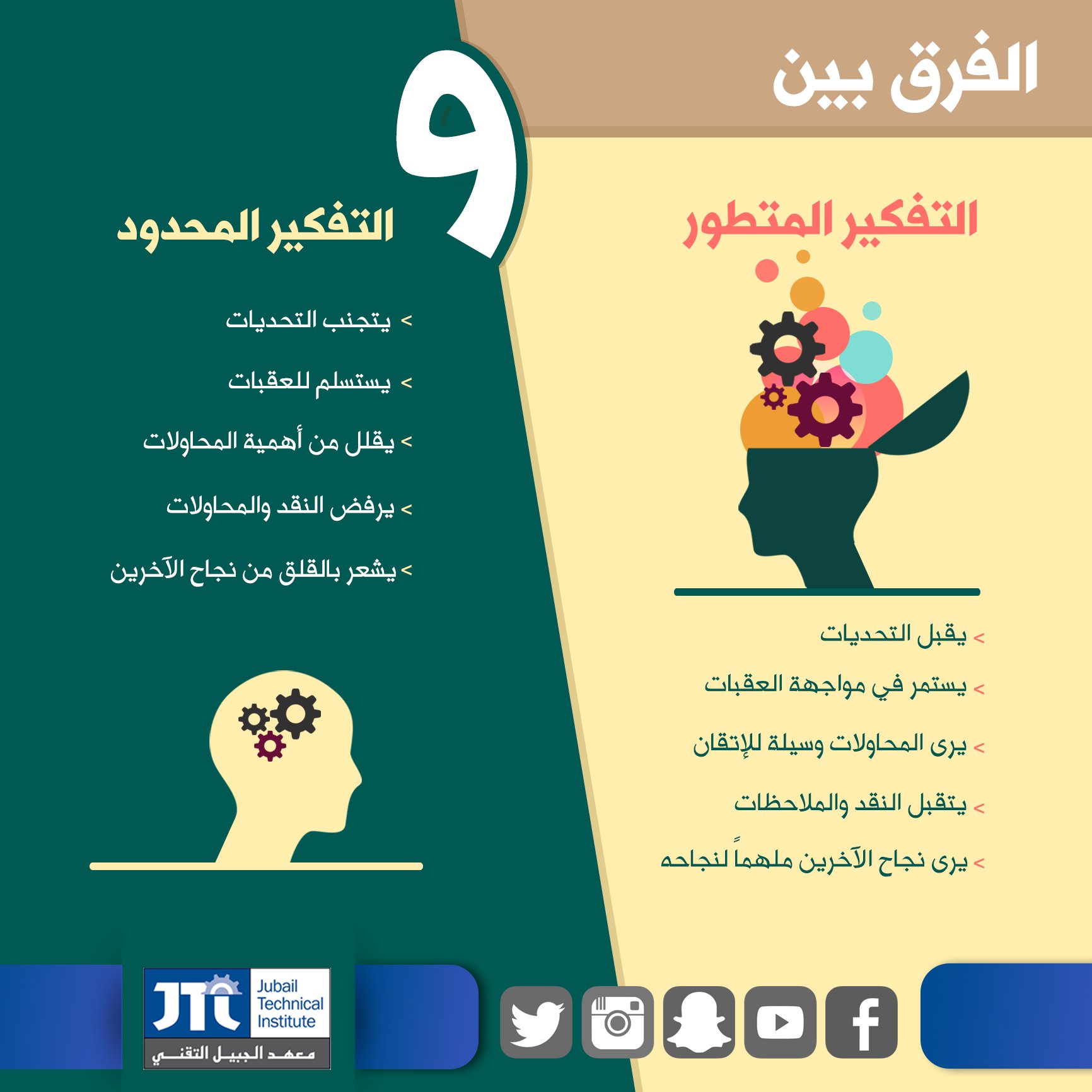معهد الجبيل التقني On Twitter الفرق بين التفكير المطور و التفكير المحدود معهد الجبيل التقني تفكير