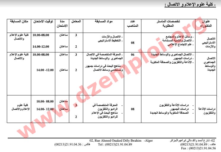 إعلان عن مسابقة دكتوراه ل م د 2017 2016 كلية علوم الإعلام والاتصال جامعة الجزائر 3