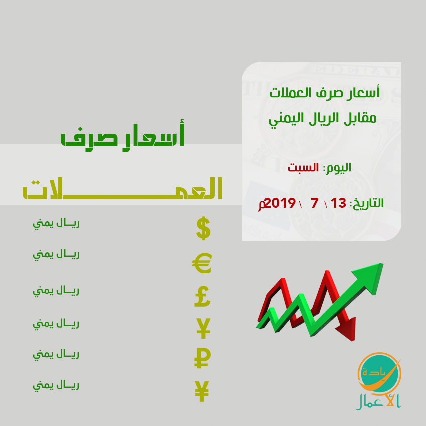 تواصل ارتفاع الدولار والعملات الاجنبية مقابل الريال اليمني ليوم السبت 13 يوليو 2019م ريادة الاعمال